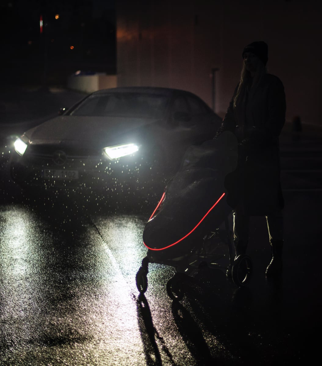 Die bewährte Fußabdeckung, die nicht nur aus funktionalem Softshell-Material gefertigt ist und durch ihre Eigenschaften wie Wasserabweisung, Winddichtigkeit und zugleich Atmungsaktivität ideal für aktive Eltern geeignet ist, wurde zusätzlich mit einer innovativen Lichtfaser ausgestattet. Dadurch sind Sie und Ihr Kinderwagen auch bei Dämmerung, Dunkelheit und ungünstigen Bedingungen gut sichtbar.