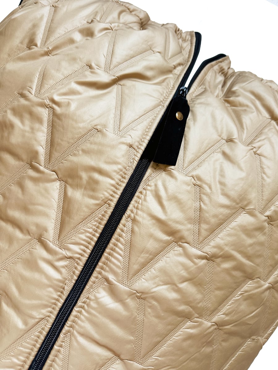 Tipp:Reissverschluß am besten so schließen, dass erst beide Seiten nebeneinander gelegt werden und erst dann der Reissverschluß zugezogen wird, somit verhindert man ein Defekt des Ressverschlußes und verlängert die Lebensdauer.