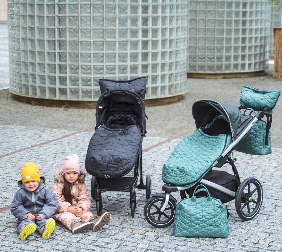 Fußsack passt in die Kinderwagenwanne oder auch in den Kindersitz, dank der Öffnung für 5-Punkt Gurtsysteme.
