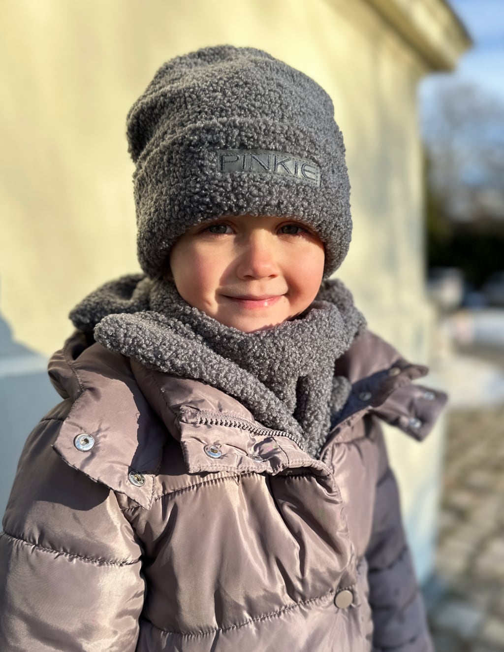 Weiche Mütze aus Teddy-Strick mit Lederimitat Aufnäher.