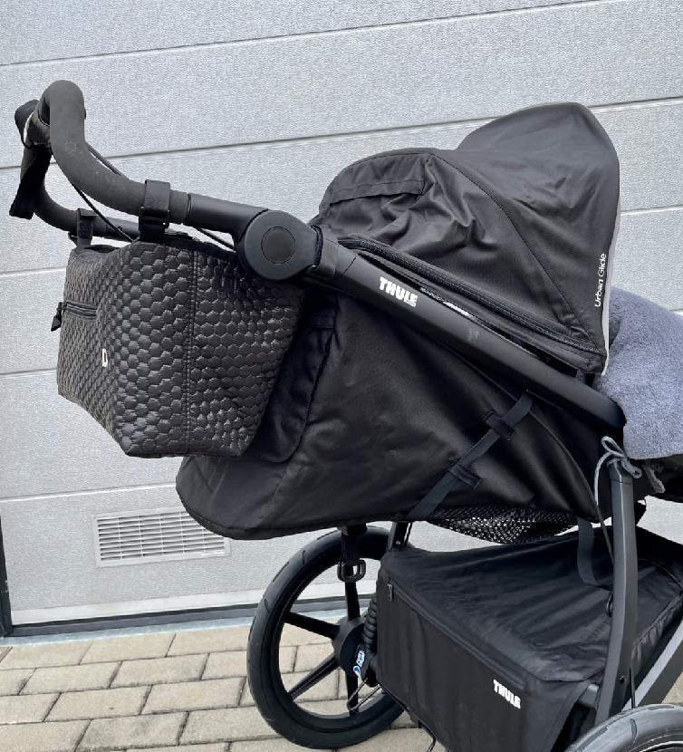 Voluminöser Organizer passend für Thule oder ein ähnliches Kinderwagen. Für den spezifischen Griff haben wir diesen Organizer entwickelt, der perfekt zum Kinderwagen passt. Somit steht der Organizer nicht im Weg, wenn man den Kinderwagen in die Liegeposition ändert.