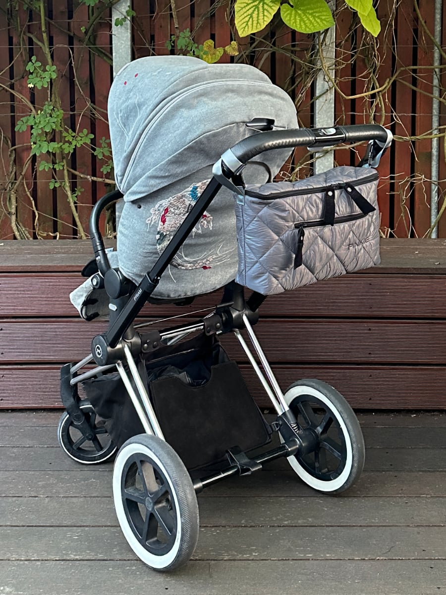 Komplett verschließbarer Organizer für den Kinderwagen, wo Sie alles wichtige für Ihr Baby ordentlich verstauen können.