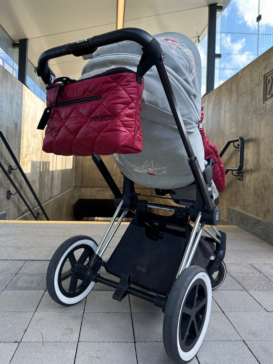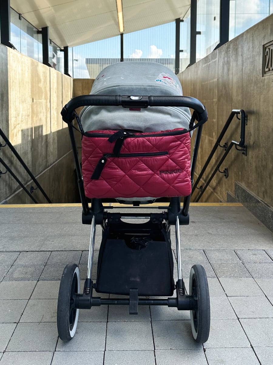 Komplett verschließbarer Organizer für den Kinderwagen, wo Sie alles wichtige für Ihr Baby ordentlich verstauen können.