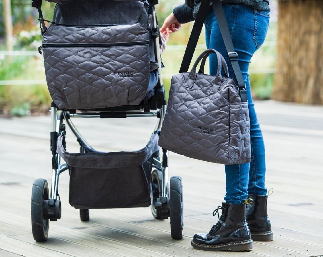 Die Kinderwagentasche um Getränke und Kleinigkeiten verstauen zu können.