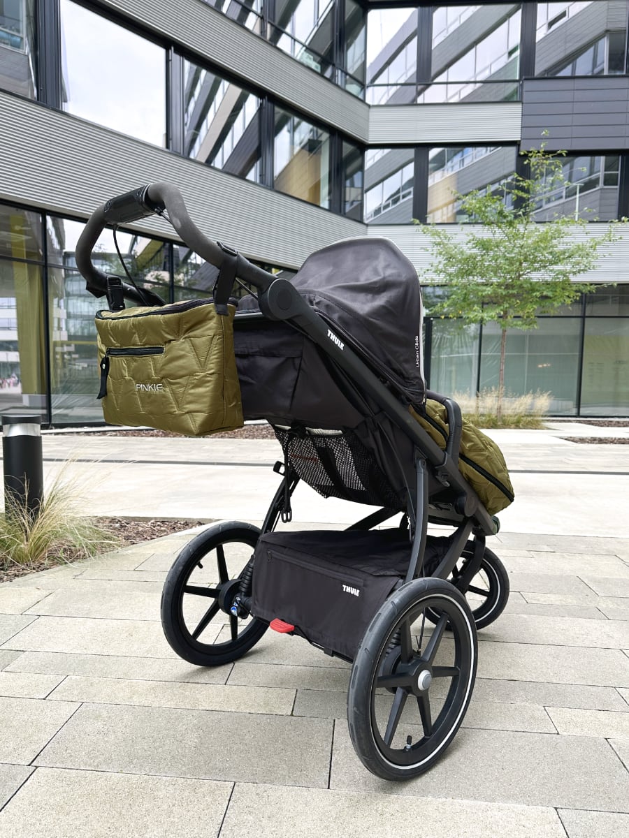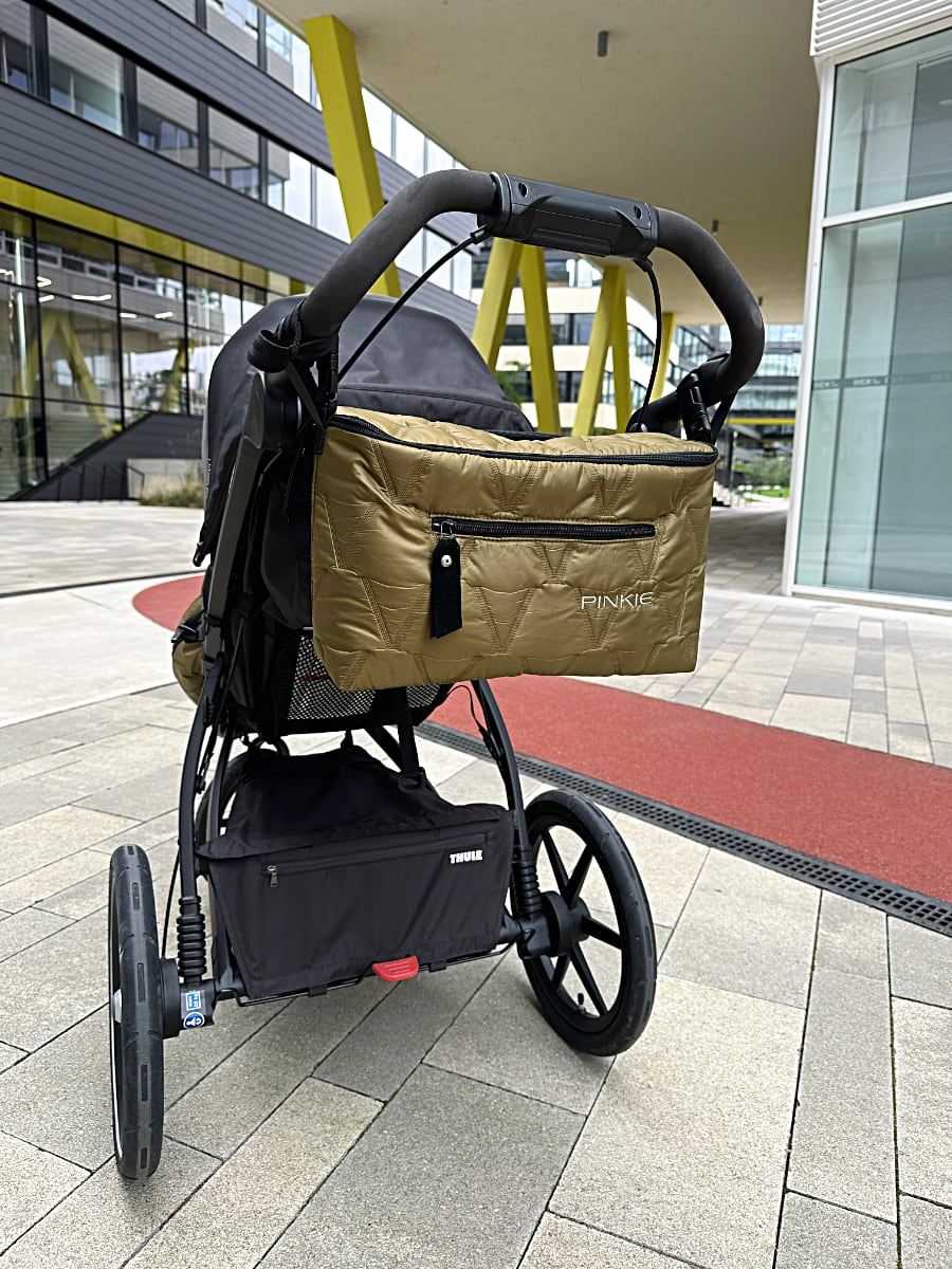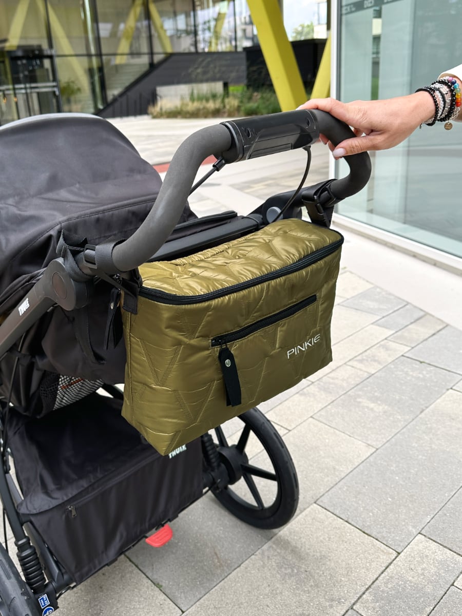 Komplett verschließbarer Organizer für den Kinderwagen, wo Sie alles wichtige für Ihr Baby ordentlich verstauen können.
