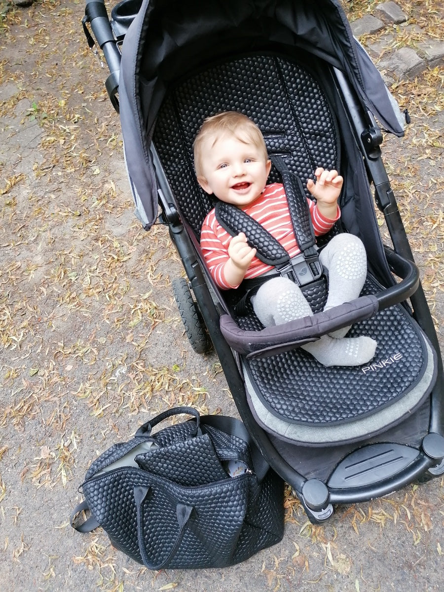 Polster für den Sicherheitsgurt des Kinderwagens zwischen den Beinen.