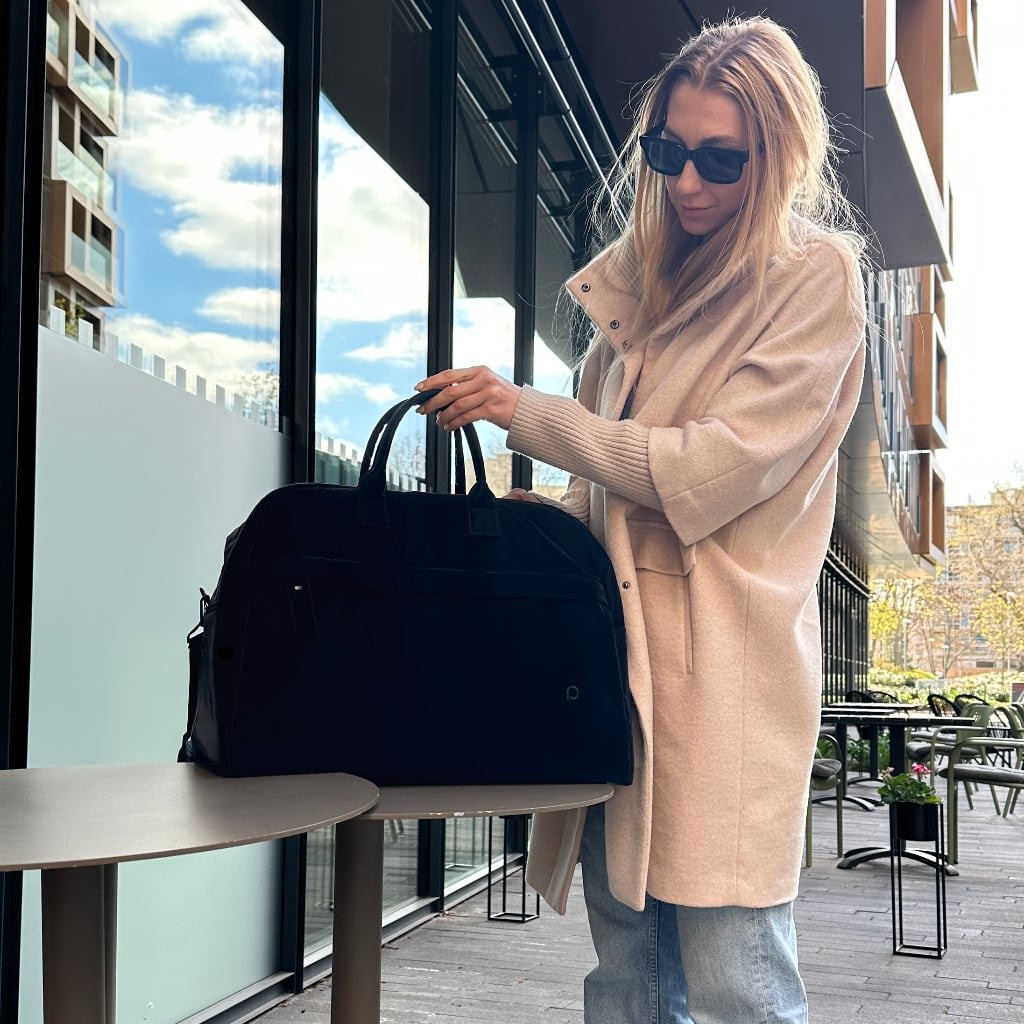 Bequeme Griffe und ein abnehmbarer Schultergurt sorgen für bequemes Tragen. Dank seines zeitlosen Designs ist es eine ideale Wahl für Geschäftsreisen, Wochenendaufenthalte und den täglichen Gebrauch.
