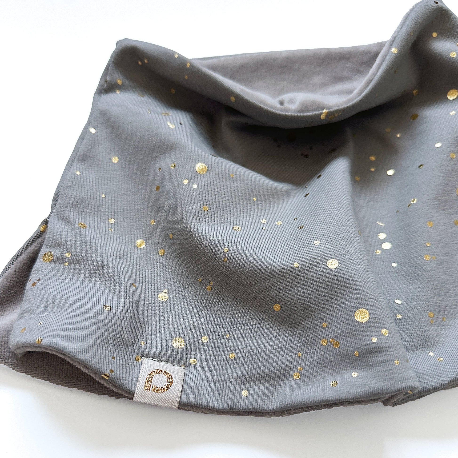 Angenehmer Schlauchschal aus Strick mit goldenen Effekten und Baumwoll-samt.