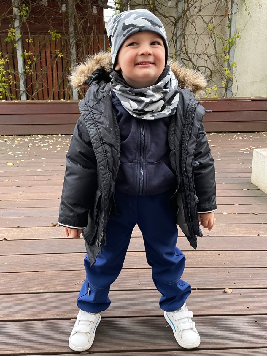 Dank den unteren Bündchen ist die Hose mitwachsen, da sie getragen werden kann, auch wenn sie noch etwas größer ist.