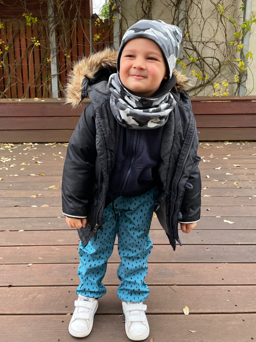 Dank den unteren Bündchen ist die Hose mitwachsen, da sie getragen werden kann, auch wenn sie noch etwas größer ist.