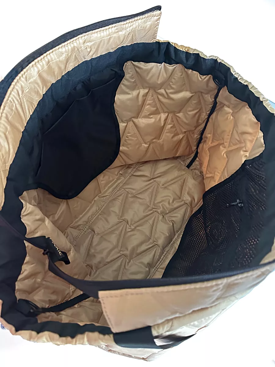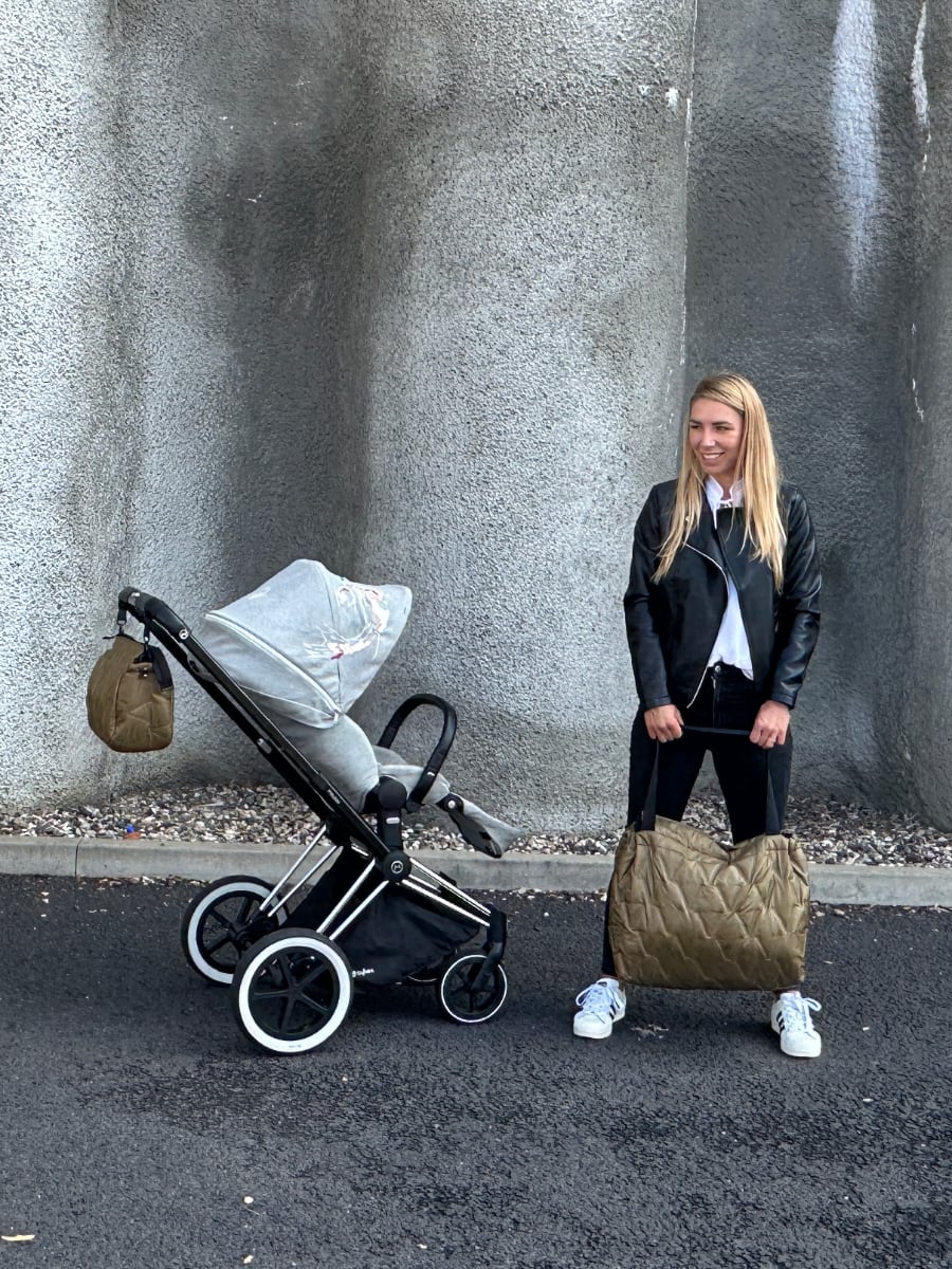 Praktische, leichte und voluminöse Handtasche, nutzbar auf verschiedene Wege, unter anderem auch als Wickeltasche.