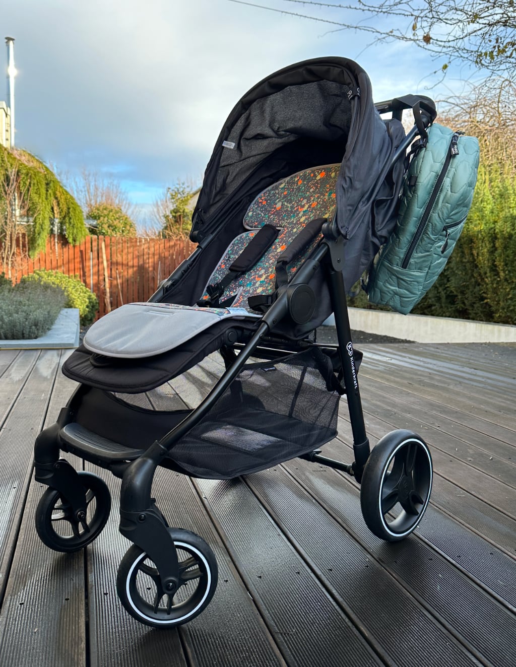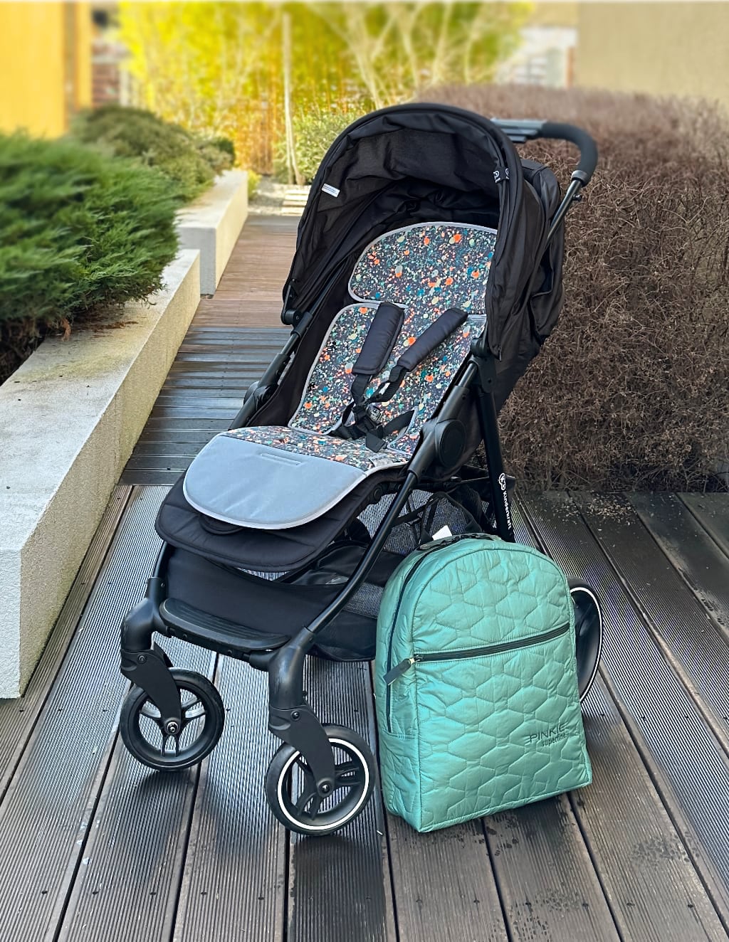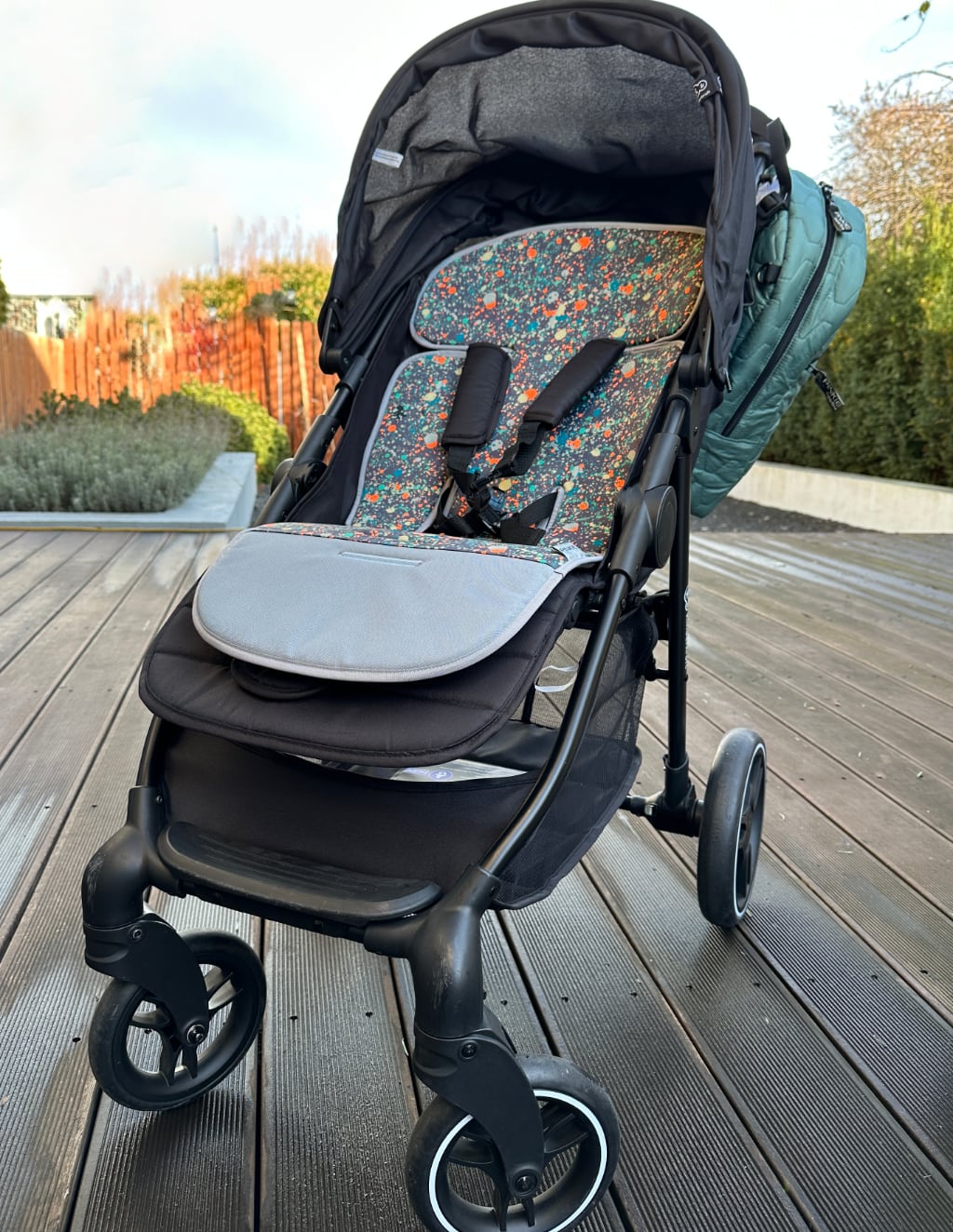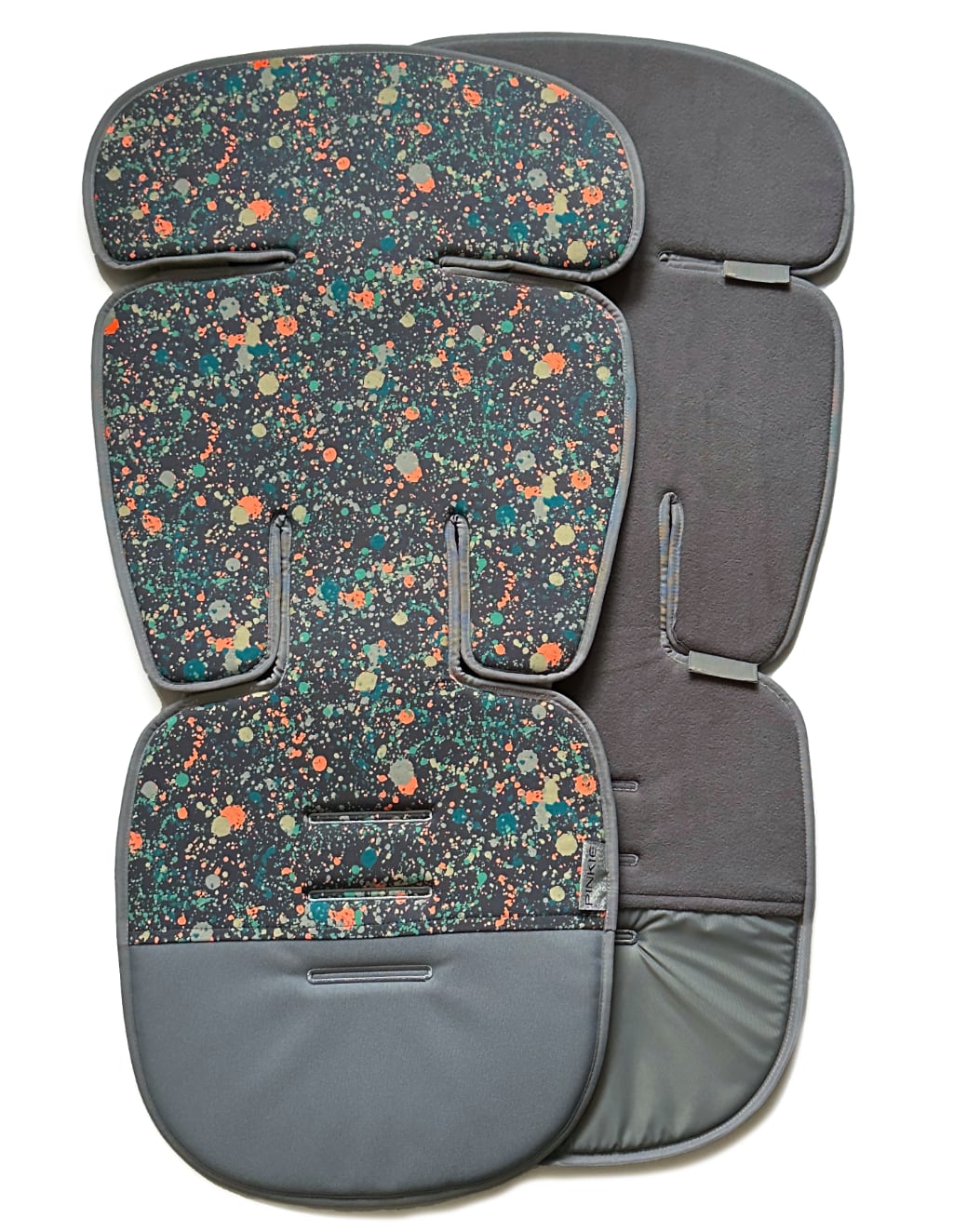 Anpassungsfähige beidseitige Sitzeinlage aus Bio.Baumwolle für den Kinderwagen.