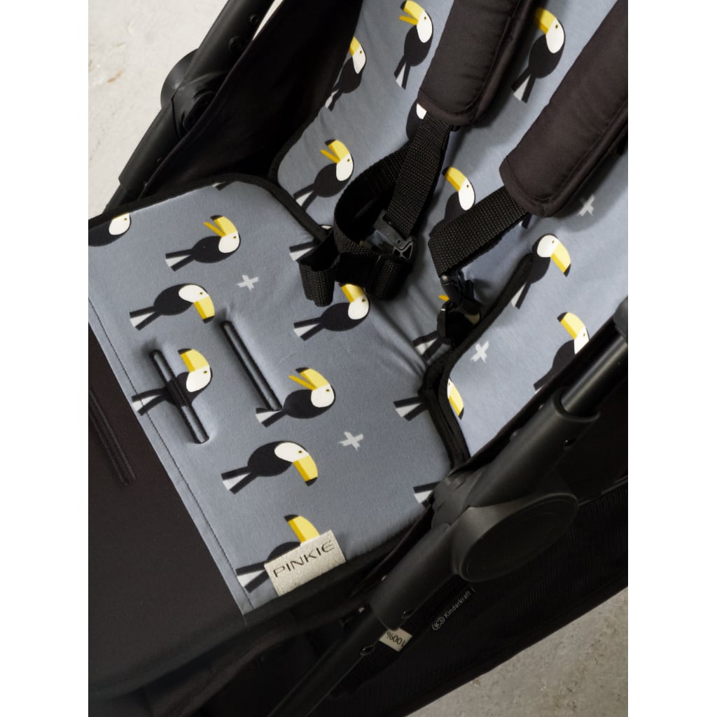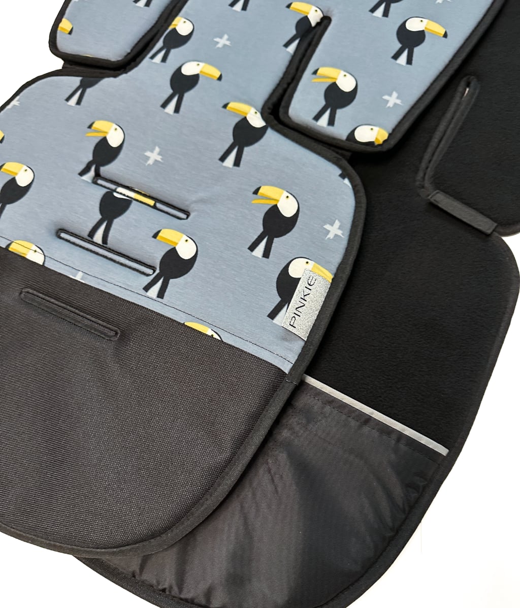 Anpassungsfähige beidseitige Sitzeinlage für den Kinderwagen.